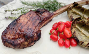 Tomahawk 1 dẻ – lớp nướng hoàn hảo, kết hợp rau củ tươi ngon cho bữa tiệc trọn vị.